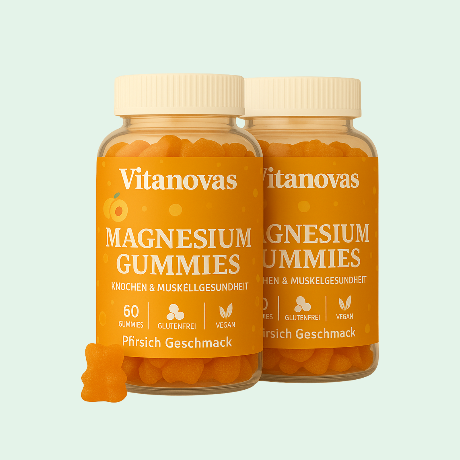 Vitanovas Magnesium Gummibärchen unterstützen Muskelfunktion, Energiestoffwechsel und Nerven. Leckere und einfache Alternative zu klassischen Magnesium-Tabletten