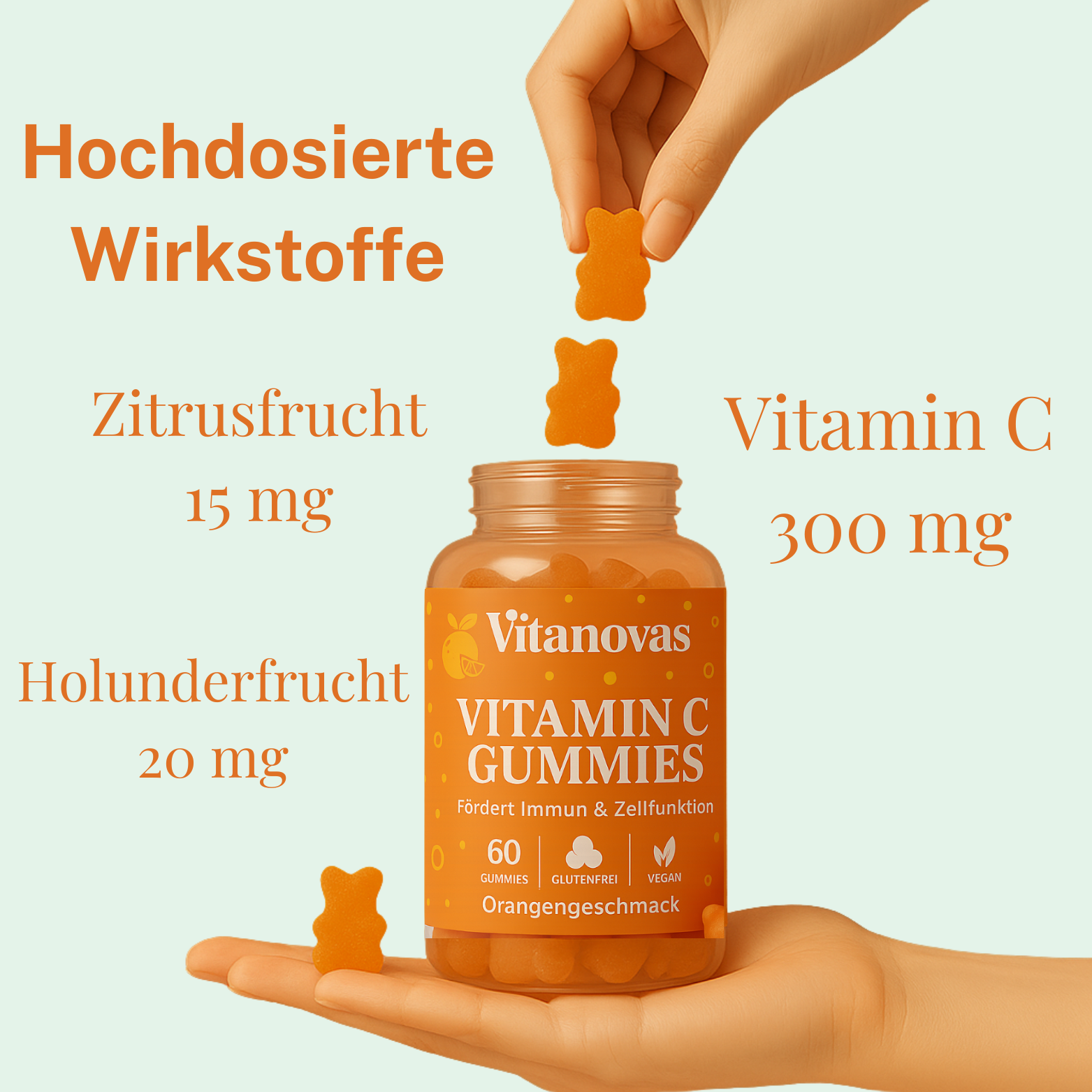 Vitamin C – Immunsystem & Zellschutz. Unsere Vitamin-C-Gummis sind hochdosiert, um dein Immunsystem täglich optimal zu unterstützen. Zusätzlich helfen sie, Zellen vor oxidativem Stress zu schützen – für mehr Energie und Widerstandskraft im Alltag.